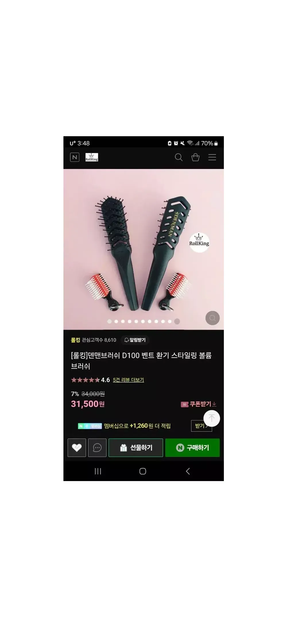 [롤킹]덴맨브러쉬 D100 벤트 환기 스타일링 볼륨 브러쉬 미용실, 바버샵에서 많이들 사용하는 브러쉬입니다 택배비포함 34500원에 샀습니다 막상 구매했지만 저하곤 안맞아서 싸게팔아요 제품은 박스만뜯은 사용하지않은 새상품에 가깝습니다 구매사이트 입니다 https://m.smartstore.naver.com/roll_king/products/4911083371?NaPm=ct%3Dls9zzfph%7Cci%3Dcheckout%7Ctr%3Dppc%7Ctrx%3Dnull%7Chk%3Dd6a46fef16e313cd9aa87db6bf282641a5aecc5e 추가로 사진 필요하시다면 따로 찍어서 보내 드리겠습니다 교환 ,환불 어렵다는점 말씀드립니다