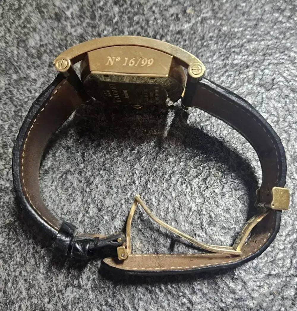 안녕하세요... 이번 소개할 제품은 불가리 남성용 금통 시계입니다.. 2010년에 구매한 제품이며 당시에 판매가는 2850정도로 알고있습니다. 모델명은 불가리 아시오마 크로노 48mm 로즈골드 한정판 모델 입니다.. 99개 한정판 모델중 16번째 모델이며 시계 전체와 버클부분 모두 로즈골드로 금만 35돈 이상으로 알고있습니다... 세월에비해 그래도 깨끗한 편입니다...(생각에 차이는 있을수있겠죠) 고가의 제품인만큼 감정할수있는 곳에서 거래를 직접하셔도 됩니다.. 흔치않은 모델인만큼 소장가지도 있다고 생각합니다. 현재 시계줄은 맞춤제작한 것이고 여분으로 브라운 색상도 같이 주문했는데 브라운 색상은 한번도 사용하지않아 새것입니다..원래 본제품 줄도 가지고있으나 낡은것같아 보관하고 있습니다.. 제작할경우 필요할듯해서요... 현재 필웨이 중고명품샵에 위탁도 부탁한 상태입니다... www.feelway.com/m/m_view_goods.php?g_no=7025703033 많은 관심 부탁드립니다.. 정말 신중하게 생각하시고 구매하실분만 연락주시면 가격은 왠만하면 시원하게 절충해드릴께요...