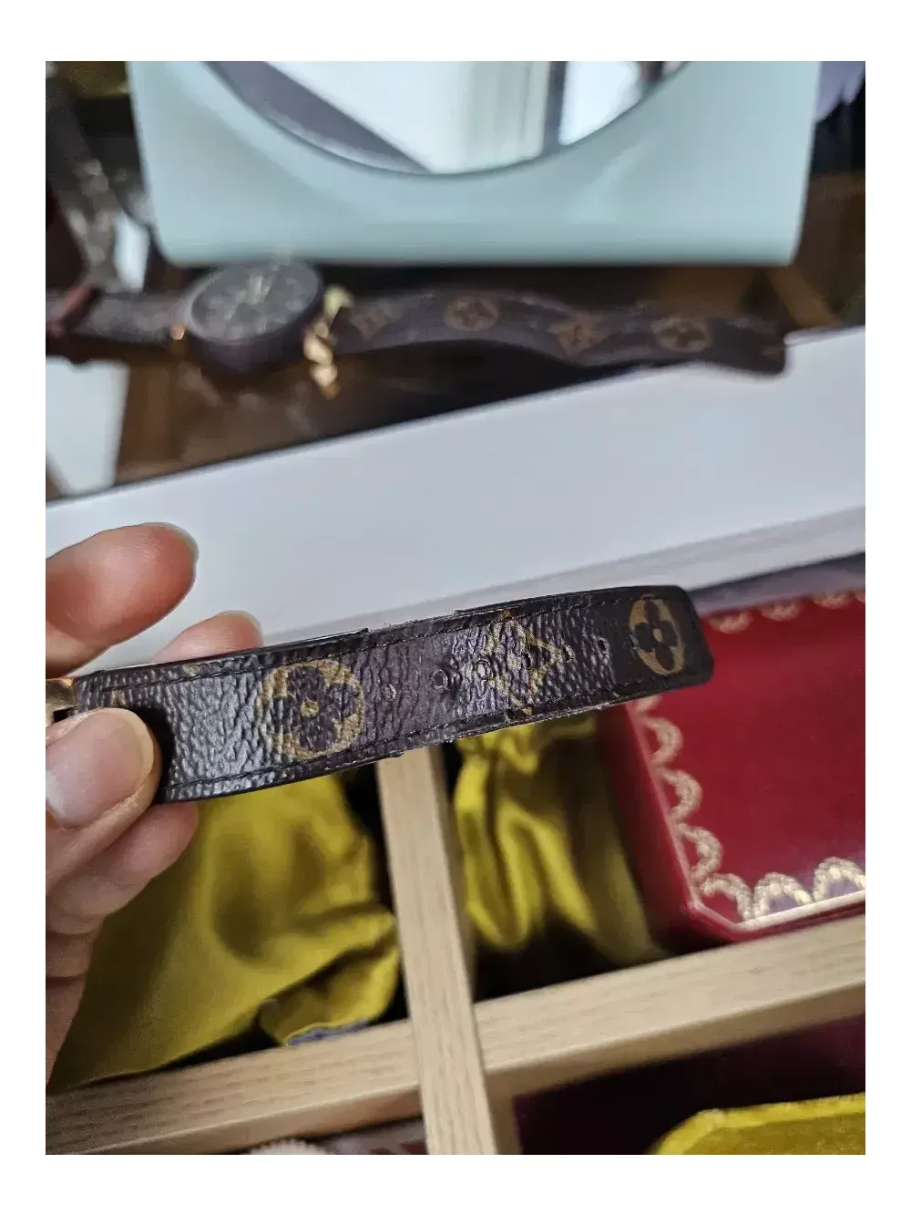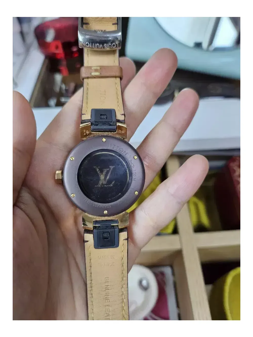 서울 롯데백화점 애비뉴엘 본점에서 작년 구매. 풀박스로 다 있습니다.한개당 830 주고 구매. 지금은 더 오른것으로 알고있습니다. 루이비통 땅부르 모노그램 남성시계는 팔렸고, 여성시계 남았습니다. 28mm. 스트랩줄 교체 감안해서 저렴하게 올려요.(에눌불가) 사진을 넘겨보시고 생각하세요. 100m까지는 방수기능있고, 주변 폴리싱 처리는 18k로 되있어서 세련되었습니다. 꼭 아시는분이 가져가주세요. 안팔리면 그냥 착용할거에요~~ 그리고 번개장터와 당근마켓에만 판매를 하고있음. 그외 타사이트는 도용입니다. 현저히 낮은가격 의심하세요 여러분. 반품,교환,환불 불가.신중히 챗주세요! 직거래만 합니다?