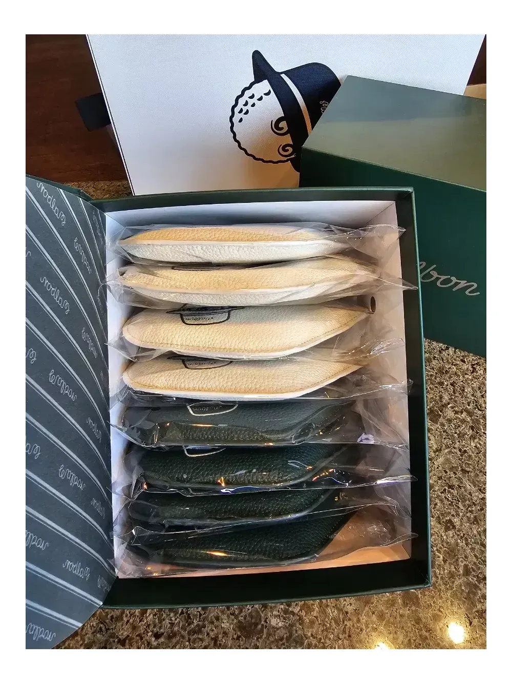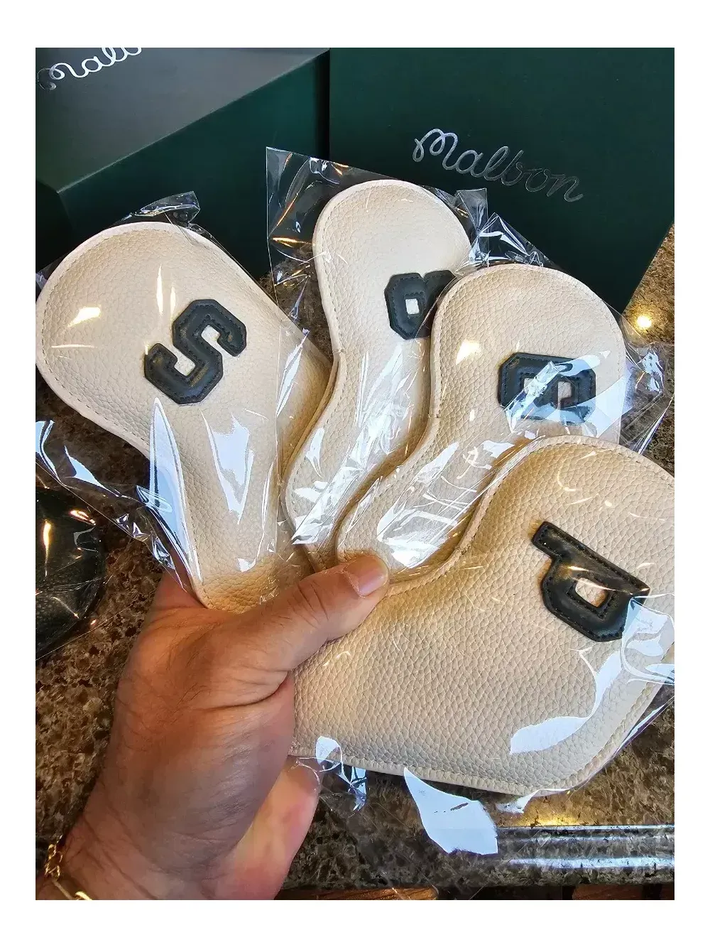 말본정품 8아이언세트 미사용 새상품 100% 정품 안전결제하시면 됩니다. 이 상품은 말본골프 23년형 새로운 아이언커버세트로 로드매장, 백화점 프로모션 300만원 이상 구매고객에게 증정한 커버세트입니다. 구성은 8개로 5,6,7,8,9,P,A,S 입니다. 정품박스가 없다면 모두 가품입니다. 정품 상당히 가벼우며, 가품은 2배 이상 무겁습니다. 따라서 찍찍이나 자석스트랩이 없어도 벗겨지지 않습니다. 말본의 아이언커버는 종류가 많지 않습니다. 온라인에 돌아다니는 90% 이상 커버의 대부분은 가품입니다. 고급스러운 정품박스에 담겨 선물용으로도 좋습니다. 안전결제하시면 통상 1~2일 후 받으실 수 있습니다.