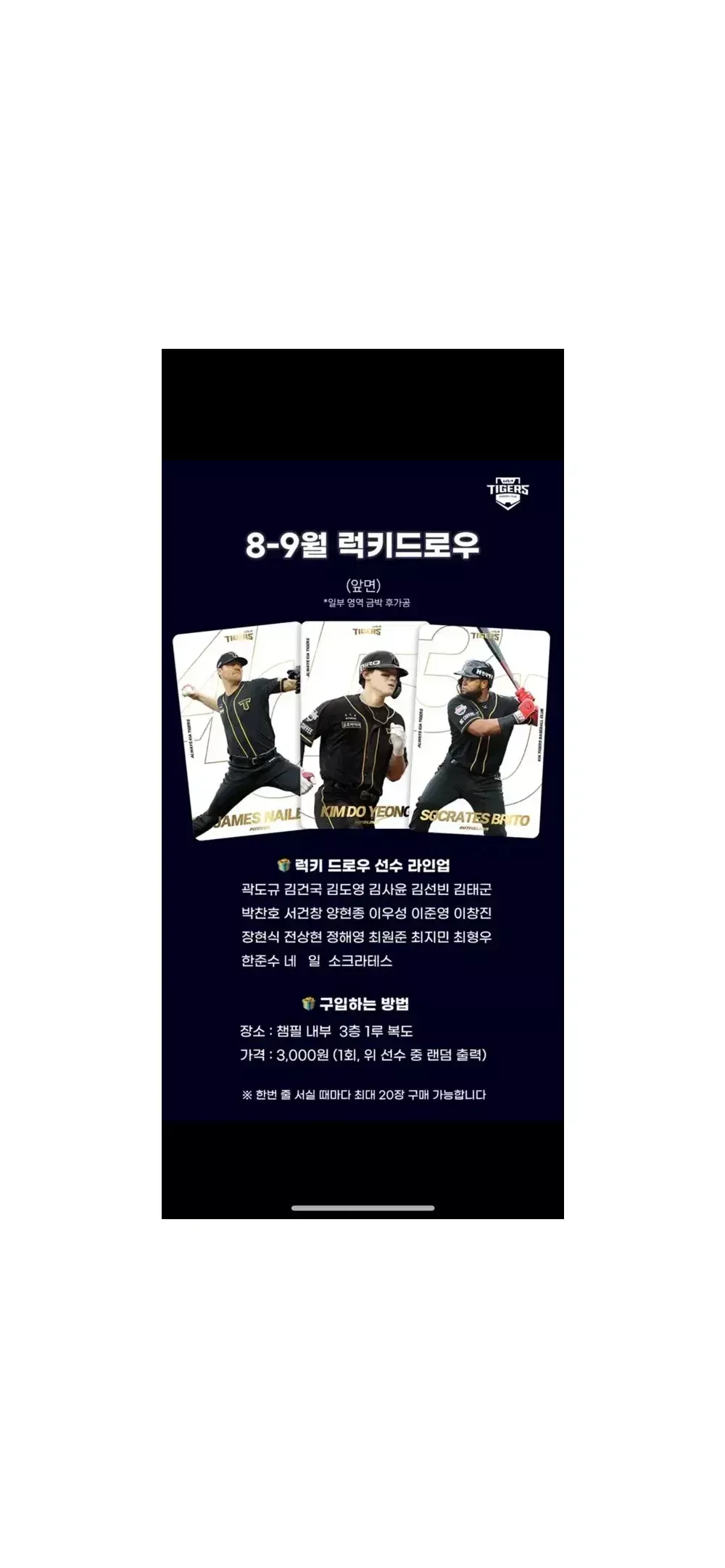 기아타이거즈 8월 김도영 럭드오프닝데이도영 > 스포츠/레저