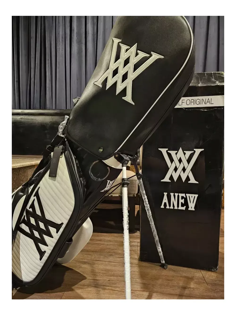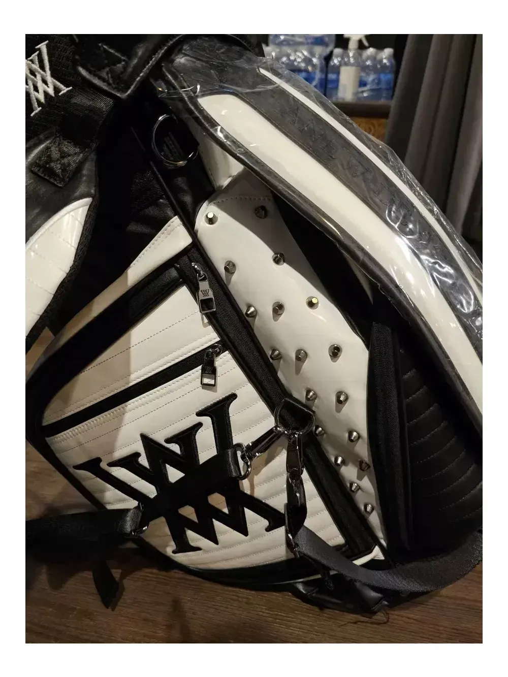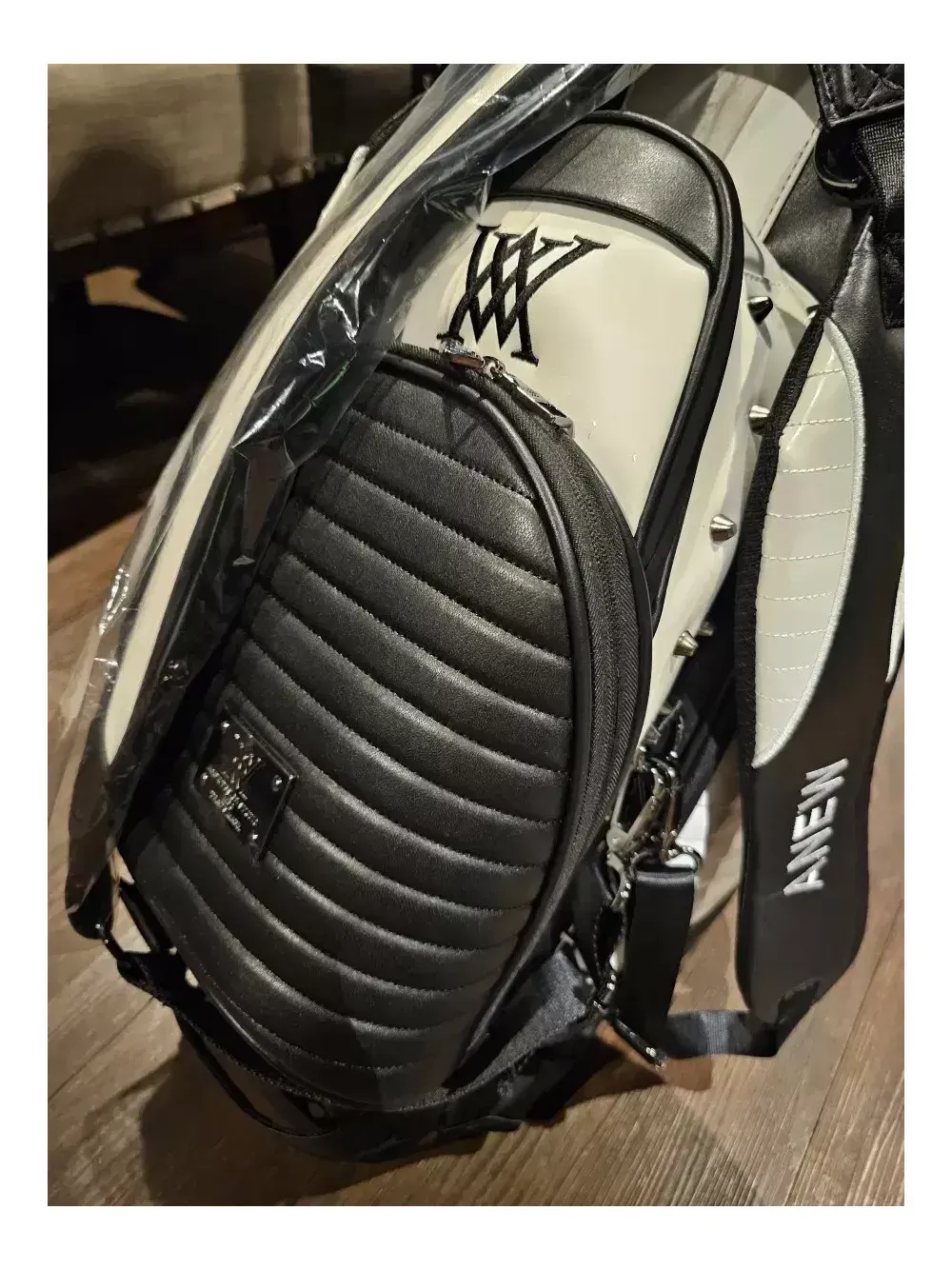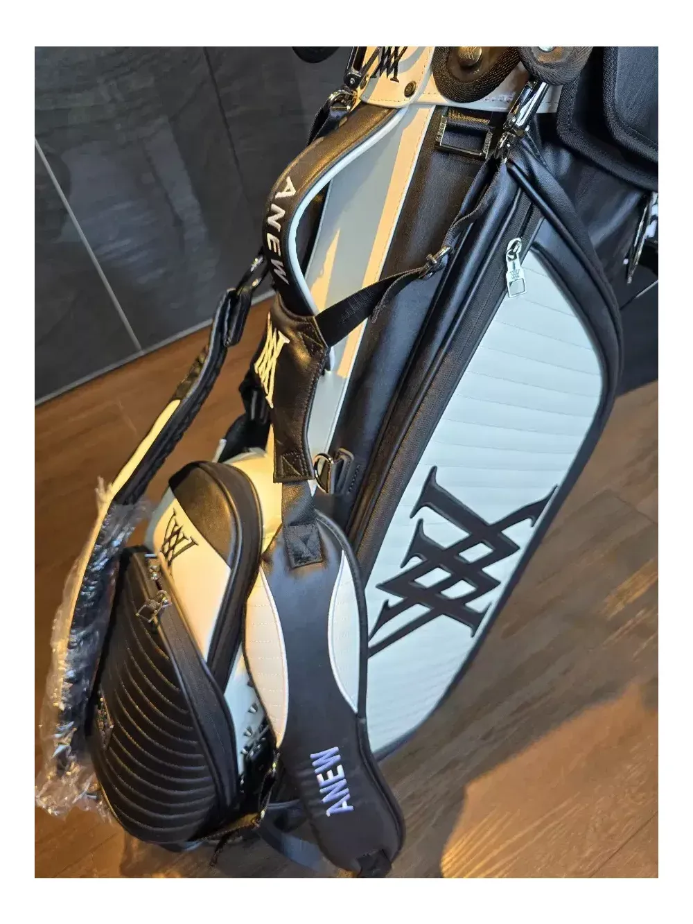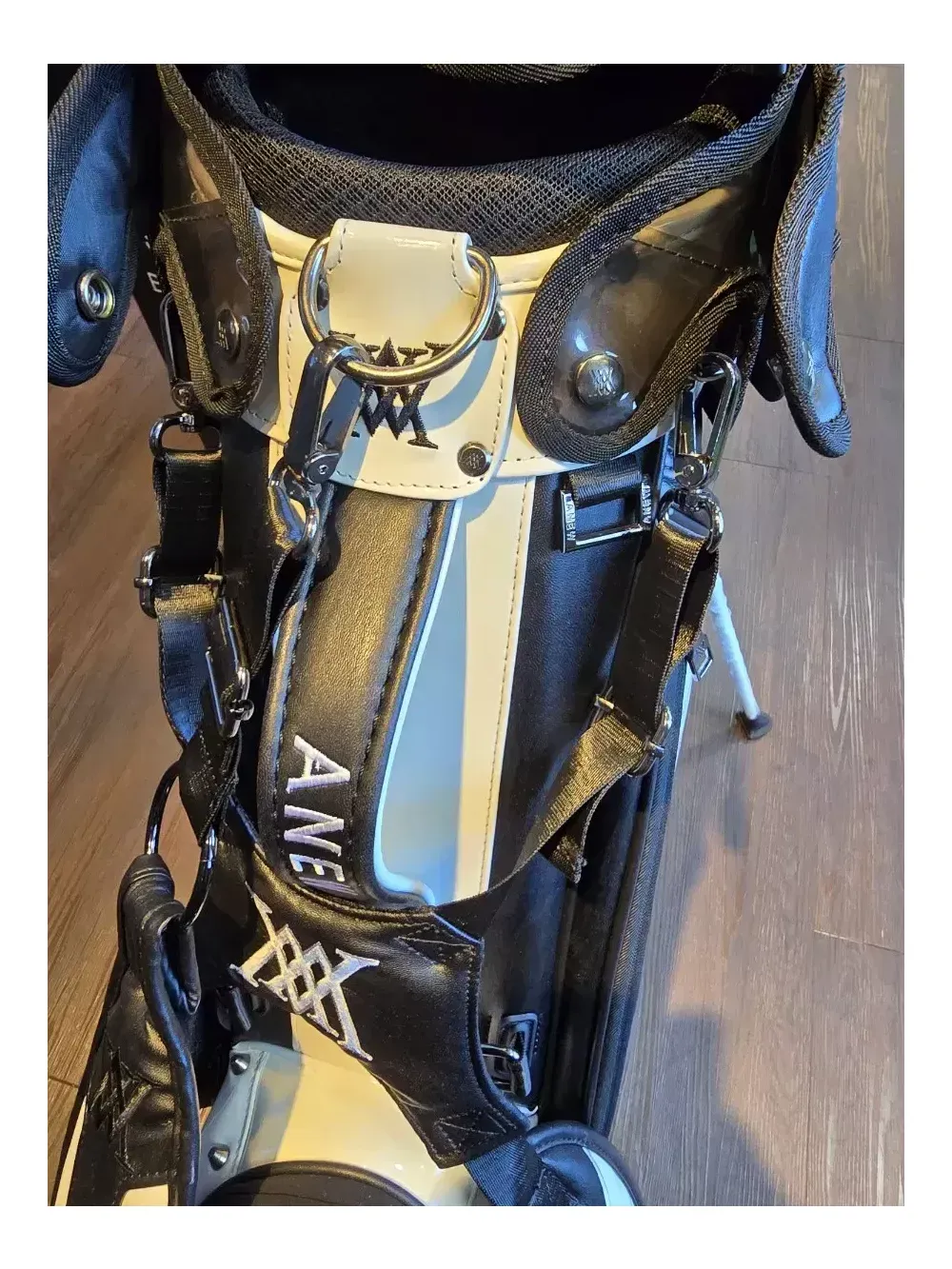 어뉴 헤이븐 스탠드 골프백 일본정품. 병행수입. 새상품. 오프라인매장, 로드매장 등에 전시했던 진열삼품으로, 철저한 관리로 새상품과 다르지 않습니다. 어뉴공홈에서는 판매가 77만8천원에 판매되고 있습니다. 안전결제로 통상 오후2시 이전에 결제하시면 1~2일이면 받아보실 수 있습니다. 헤이븐은 투컬러 스탠드백의 후속모델로 천 직조가 아닌 합성가죽 등의 재질로 더욱 고급스럽습니다. 중량은 6kg대이며, 아주 튼튼하고 렉은 부드럽습니다. 특히, 렉도 블랙과 화이트로 2가지 컬러로 조화를 이룬 것이 특징입니다. 본품 외에 후드커버, 투명후드커버, X자 어깨끈, 일자 어깨끈, 아크릴 네임텍이 있습니다.