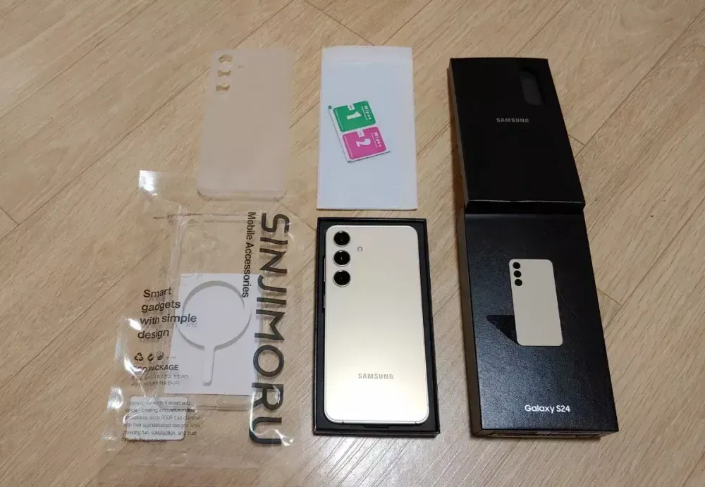 갤럭시 S24 일반형 자급제폰 (9월28일 액정교체) 해서 임시필름 붙어있으며 생활감없는 새거급 외관상태 입니다. (엠버옐로우 256GB) SM-S921N 최초개통2024 . 3. 1 약정없는 자급제/공기계 통신3사 사용,선택약정할인 모두 자유롭게 가능합니다. LTE 및 알뜰폰유심 박스 / 케이스 / 액정필름
