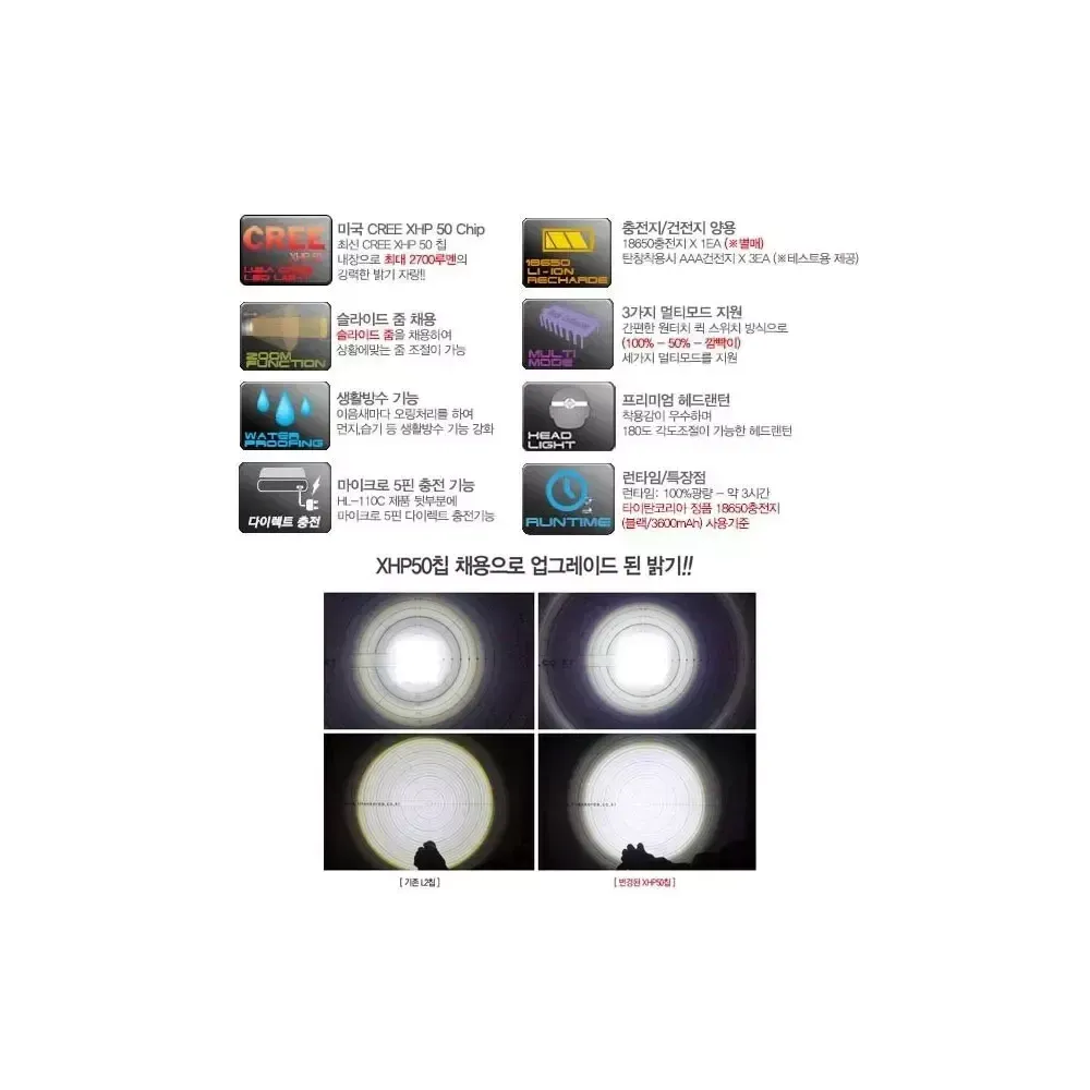 2700루멘 충전식 헤드랜턴 AAA건전지 3개 또는 18650 충전지 1개사용[충전지는 별도구매] 색상 : 블루, 레드 @별도구매가능상품 -.18650 2400mAh 충전지 : 9,000원 -.18650 3600mAh 충전지 : 13,000원