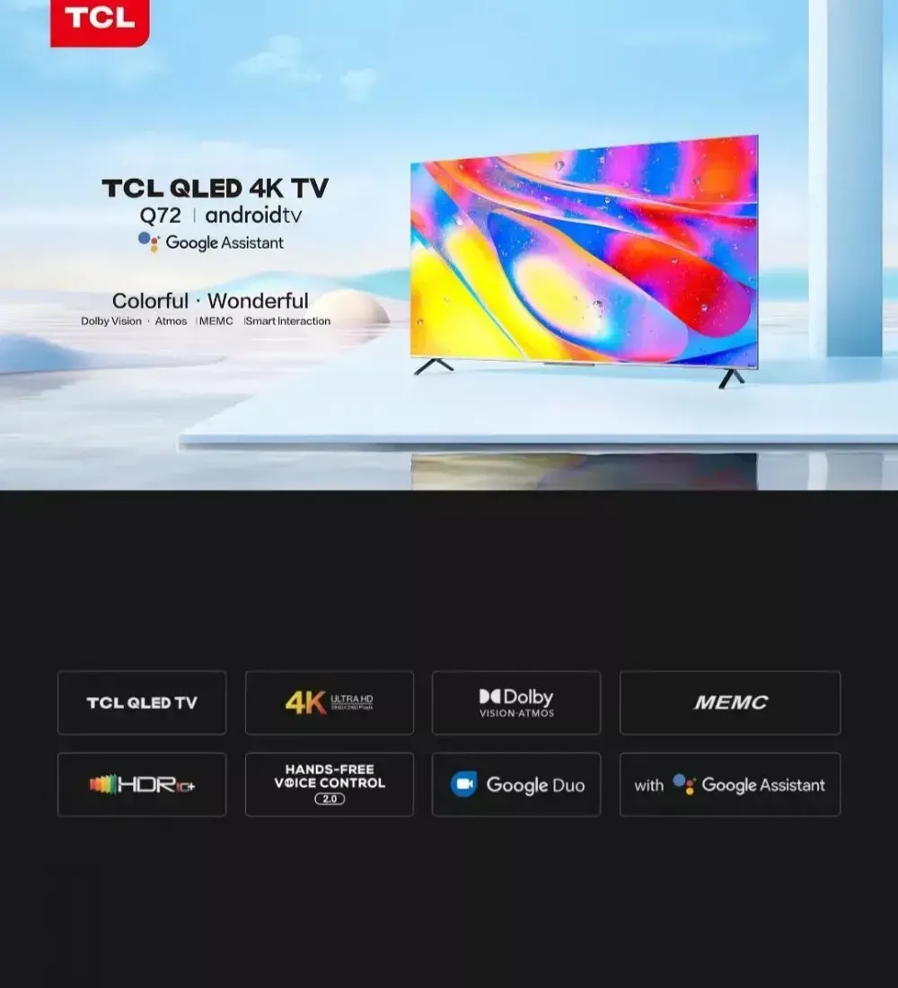TCL 55인치 4K QLED 안드로이드 스마트 TV 모델명 TCL 55Q72 2022년 5월 제조 디자인 미려하게 잘빠진 제품 입니다. 화질 좋은 QLED TV 이고 애트모스 지원 온쿄사운드로 사운드도 훌륭합니다. 넷플릭스, 유튜브 등 지원하는 스마트TV 입니다. 서울 강동구 성내동입니다. 가까운 지역은 배송해드립니다. QLED TV / 55인치(140cm) / QLED / 4K UHD / 60Hz / 로컬디밍+FALD / 명암비: 5천:1 / 스마트: 넷플릭스 , 유튜브 , 미러링 , 구글어시스턴트 / OS: 안드로이드 / 사운드: 돌비애트모스 / HDMI(전체): 3개 / USB: 2개 / 지원: HDMI2.1 , eARC / Wi-Fi / LAN / 옵티컬 / 헤드폰 / 에너지효율: 3등급 / 소비전력: 155W / 2021년형 / 베사홀: 300x300mm / 크기(가로x세로x깊이): 1127x765x42(300)mm / [화질음질] 돌비비전 / HDR10+ / [게임특화] HDMI2.1 / ALLM