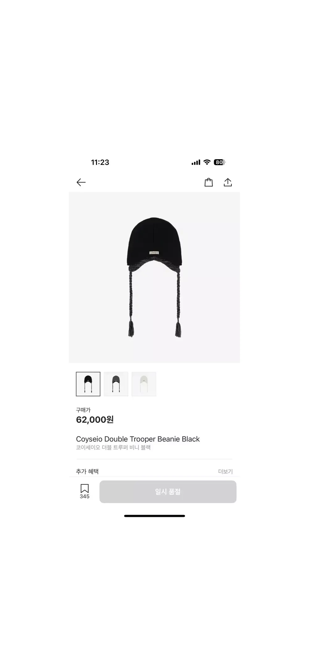 코이세이오 더블 트루퍼 비니 블랙 > 패션/잡화