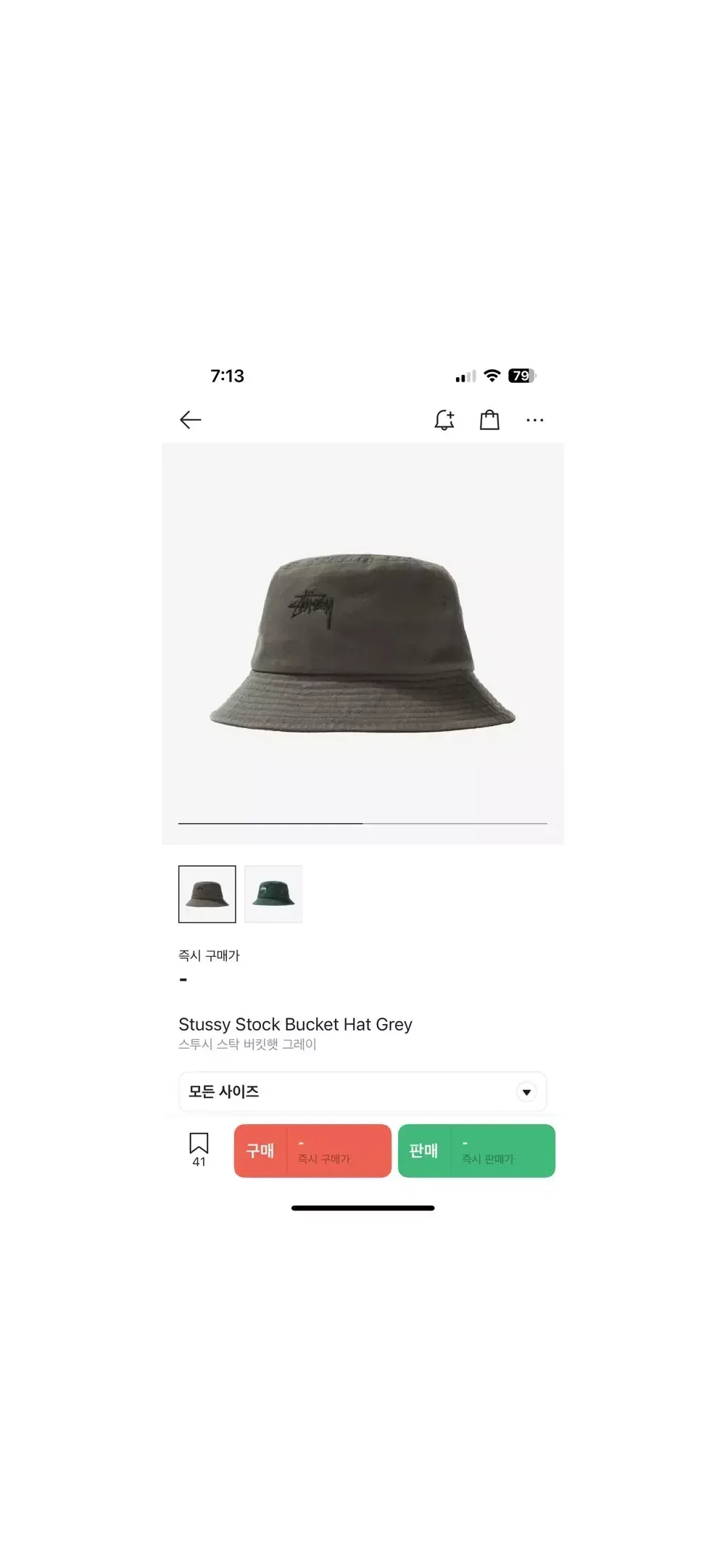 스투시 스탁 버킷햇 그레이